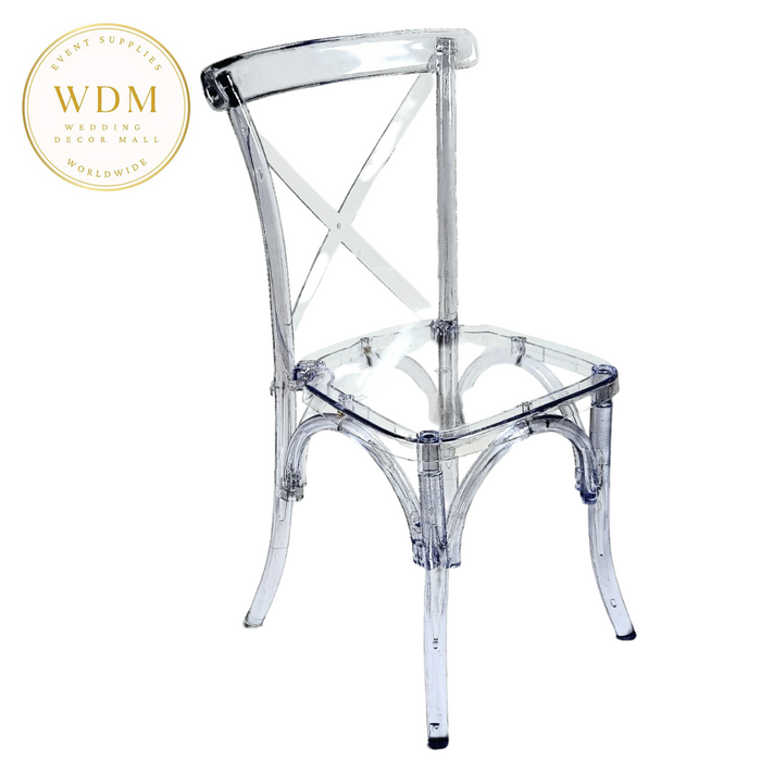 This modern Acrylic Clear Cross Backed Chair will suit any contemporary home, providing both comfort and style. Its acrylic seat and back provide extra support and the cross backed design adds an eye-catching detail. Durable and easily-maintained, the chair is designed to last. It has cushion for added comfort. It has cushion for added comfort. Seat cushions are sold separately.